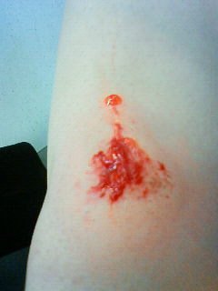 どうも化膿したらしく今日は膝が真っ赤に腫れてぱんぱんです。
